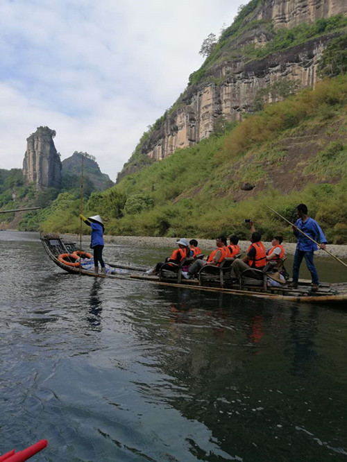 武夷山兼有黃山之奇,桂林之秀,泰山之雄,華山之險,西湖之美,游了武夷山,可眾覽三山五岳風光之妙。二天時間里,大家領略了武夷宮的雄偉壯觀,飽覽了九曲溪兩岸的秀麗風光;登上了天都峰,感受了虎嘯峽一線天的鬼斧神工;品大紅袍享帝王之福,KTV高歌一曲,余音繞梁。