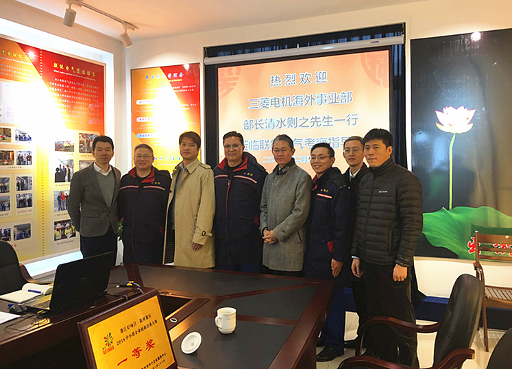 2019年2月25日下午,三菱電機海外事業部部長清水則之先生一行蒞臨聯能電氣進行考察。聯能電氣董事長李杰、總經理姜松峰、總工謝名勇;三菱電機佐藤部長、徐強、歐華及相關部門負責人參加了考察。