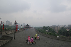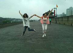 一下火車,綿綿細雨中還帶著絲絲涼意,但絲毫沒有影響到我們那份熱情!呼吸一口新鮮空氣,似乎嗅到了歷史的味道。今天的目標是游覽古城墻、大雁塔、歷史博物館和回民街。登上古城墻,綿綿細雨也停了,老天也在歡迎遠道而來的朋友。放眼遠眺對面塔樓上的“旭日東升”很巧妙地與高樓大廈相互映襯,融為一體分外和諧,歲月的痕跡隨處可見。參觀陜西歷史博物館感受中國三千年的歷史,館內藏有商周時期的青銅器、歷代陶俑、漢唐的金銀器具和唐墓壁畫等珍品文物,而且大多為漢、唐盛世時期的珍寶,是了解古代中國光輝文明的好地方。在西安,現代摩天高樓與古色古香的帝王宮殿、塔樓和諧一身,古典時尚與歷史潮流在這里得到完美演繹。久遠深厚的歷史底蘊和蓬勃發展的現代氣息,感受了歷史與文化的沉淀,城市的精魂永在。