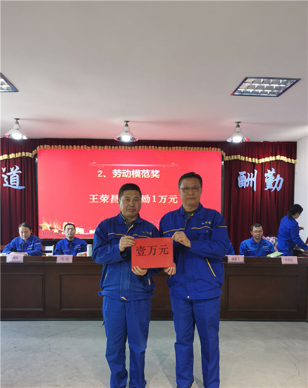 李杰董事長為勞動模范獲得者頒獎并合影留念