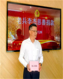 作為一名退役軍人,李董始終懷著強烈的社會責任感,積極奉獻社會。每年春節、“八一”節等重大節日,李董親自上門看望慰問烈士家屬,送上慰問金和生活物品;向慈善總會、退役軍人慈愛關愛點等單位捐錢捐物。今年“八一”建軍節之際,李董又榮獲杭州市濱江區“軍旅榮光人物”獎。
