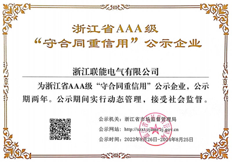 浙江省AAA級“守合同重信用”公示企業