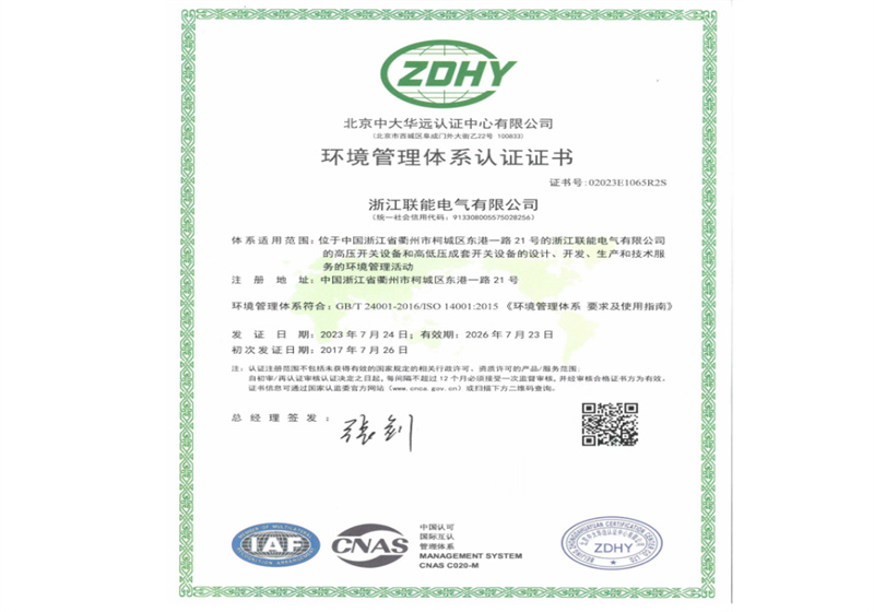 環境管理體系認證證書